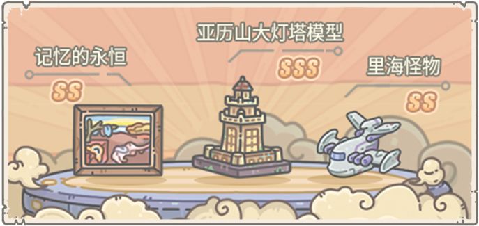 其中橙色SSS贵重品-亚历山大灯塔模型将于本期“抽奖嘉年华”活动结束2个月后,进入3号抽奖机奖池中。