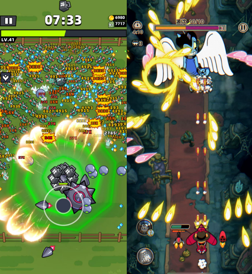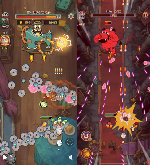 不爽的原因可以分为两大层面。首先说外部原因,是游戏主要玩家群体的用户属性和此类游戏的调性可能并不匹配。这类型的游戏现今已经非常少见,垂直用户相对稀少。你很难指望有多少《东方project》的玩家能成为这游戏的核心受众。而近似的垂类用户,恐怕也是距今已有十年的《全民飞机大战》,《雷霆战机》,和近两年上线的《飞吧龙骑士》的这批玩家了。所以这游戏的主要用户群体,我猜还是以被画风吸引的路人玩家,和以《弹壳特工队》,《向僵尸开炮》为代表在这两年比较流行的肉鸽割草射击类游戏玩家为主。他们的爽感来源于通过局内的技能buff叠加,用夸张的攻击消灭海量敌人,爆出满屏的数字产生的割草快感。而飞行弹幕射击游戏的爽感主要体现在灵活的穿梭于弹幕无伤干掉敌人的成就感。通俗来讲就是分别建立在华丽的打人和被人华丽的打这两个相反的层面之上,这就造成了体验和预期之间的错配。