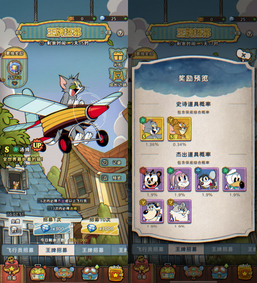 那么这个游戏,抽卡是个什么价位呢?我们来看卡池。以猫和老鼠的活动池为例。汤姆和杰瑞是分开的,在汤姆的up池,汤姆概率是1.36%,杰瑞是0.34%,杰瑞池同理。卡池70抽为保底,首次保底必出对应角色,但从第二个保底开始,就只有60%的概率是对应up的角色,这时就可能出现歪保底的情况了,概率还不低。如果这次保底歪了,那再下次的保底则必为指定up角色,好家伙,大小保底,沟槽的米池特色还在追我。