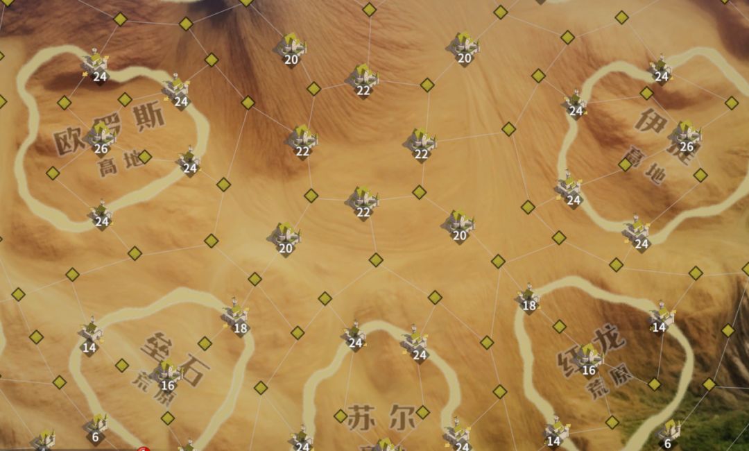 荒原:2级区域,有关隘隔绝,中心为22级城,一共4个。