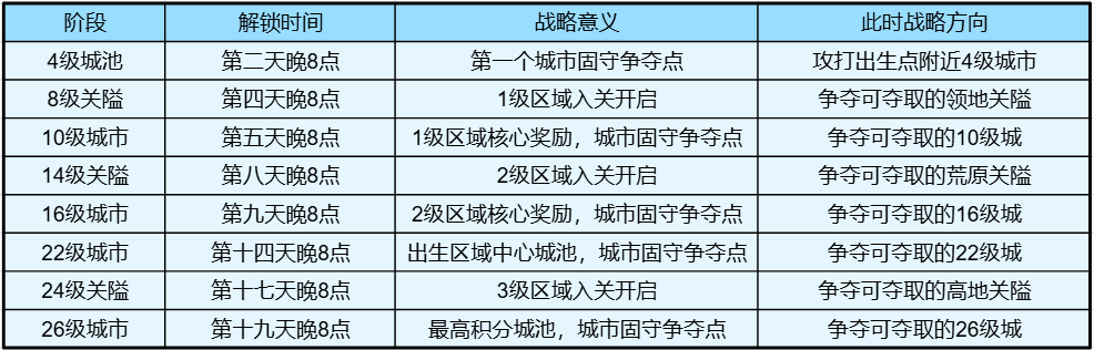 最后,这里给出一个简单的地图战略建议,以时间阶段规划,供各位领主参考。