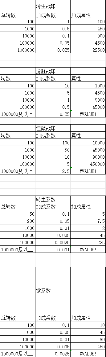 这一种的好处就是可以直接觉醒,开启下一个系数,但坏处就是,前期需要的转生数过大,需要大概一两万的转生数才能觉醒一次,同时刚觉醒之后会转生速度也会变慢,需要挂很长时间。如果有高星装备可能会快一些。(这涉及到了转生战印以及转系天赋最终倍数,战场掉落物等等三十万转觉醒时在细说)同时也不能挂自动觉醒,离线也不能觉醒(虽然离线觉醒亏的东西很多,但适合不是一直在线的玩家)