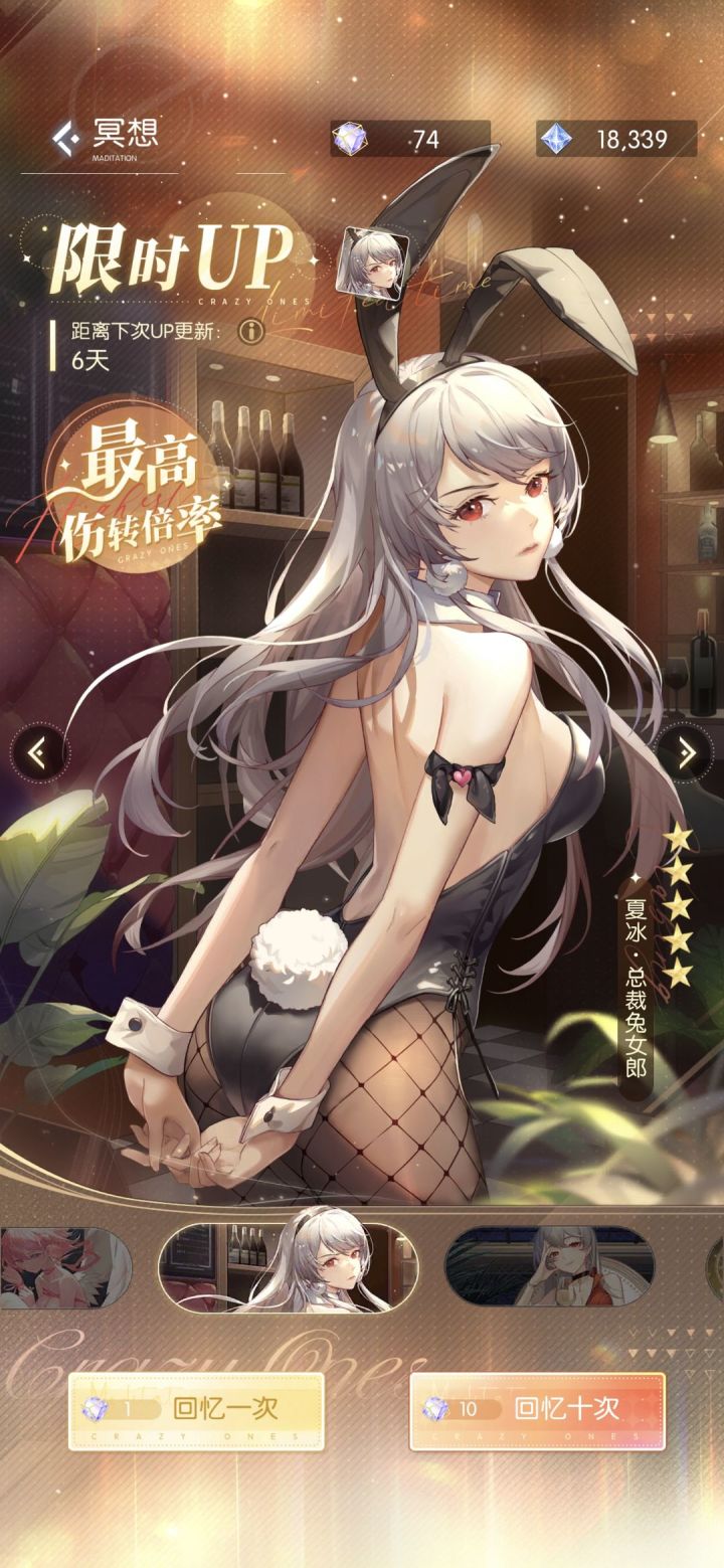 起因是因为共赢新海,我开始通过写攻略的方式带新手,总结一年多的经验的同时也能领奖励。然后就有了今天,入坑一周的萌新(疑似是个小姐姐,下用女性代词进行第三人称指代)过来求带。我看了她卡组,一个金都没有,资源都攒着了,活动关卡也打不过。我就想让她抽张兔女郎去秒人推关卡,然后,就有了图二,保底歪到一张我恨不得像前女友合照撕掉一样的废卡上。虽然小姐姐心态很好表示非习惯了,但我还是想说man what can i say