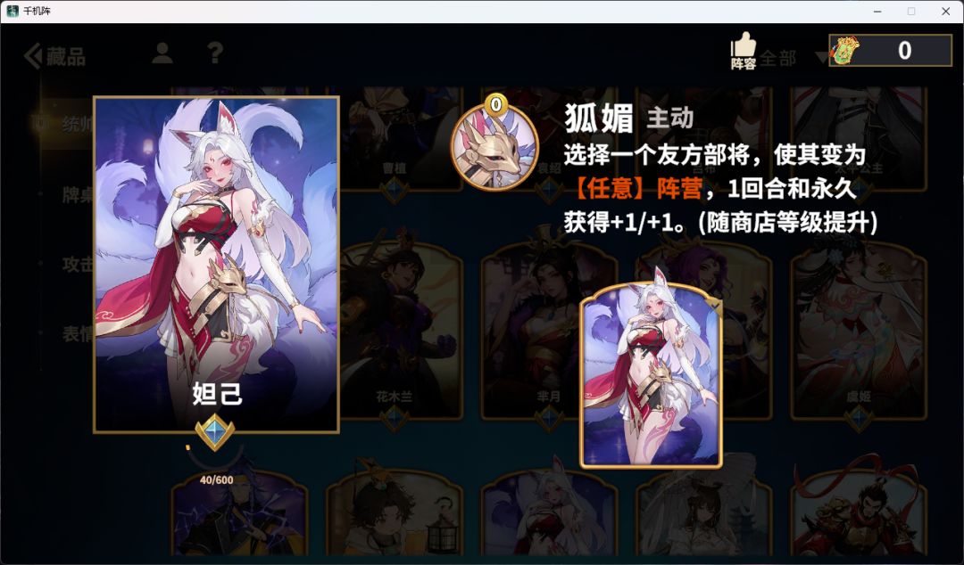 技能:选择一个友方部将,使其变为任意阵营,1回合和永久获得+1/+1。(随商店等级提升)