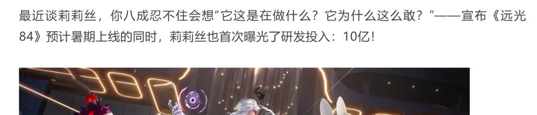 《远光84》的困境并非莉莉丝在“大DAU”赛道上的首次受挫。。。。。