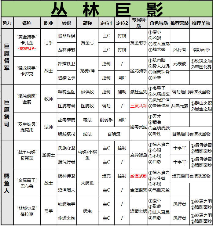 - 金角色、皮肤、特质、套装、项链、圣物、魔王一览
