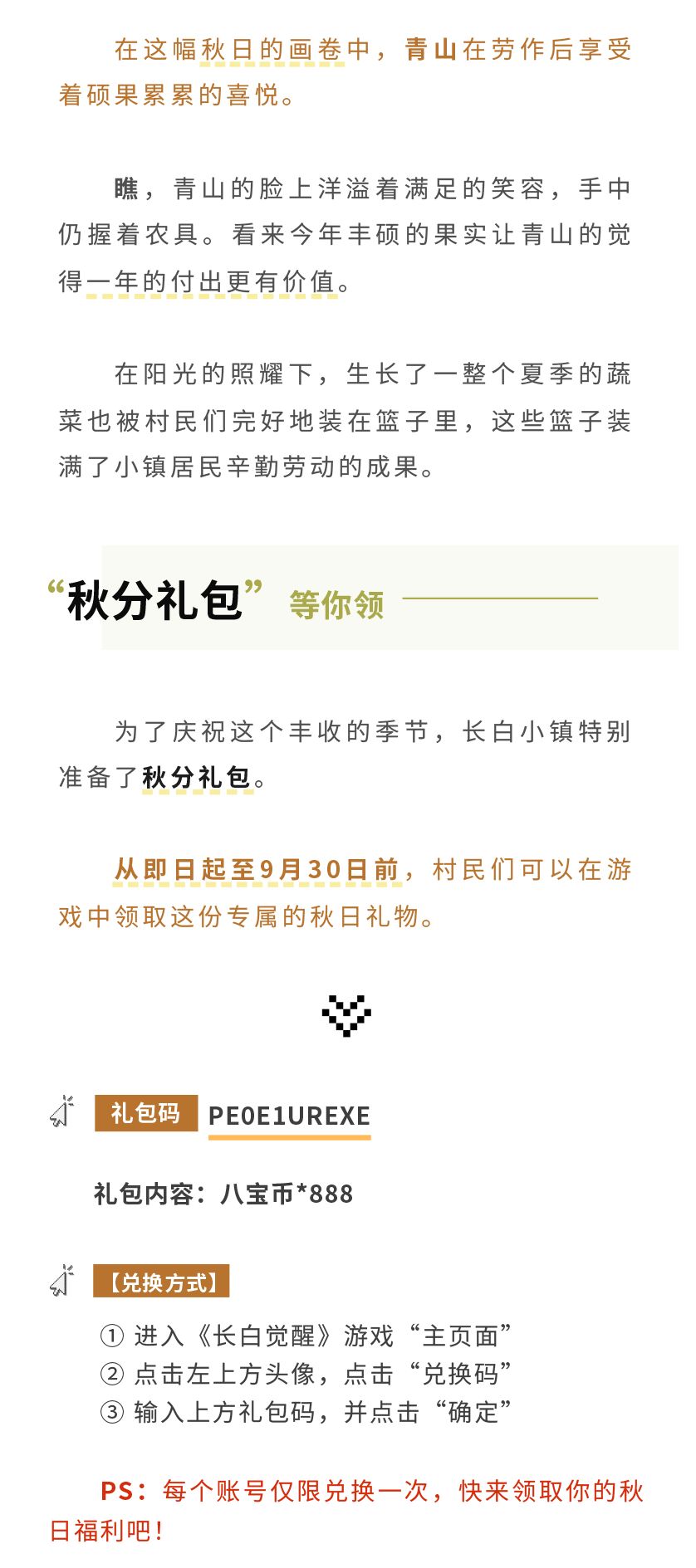 【内含礼包码】秋分时节,共享丰收的喜悦!