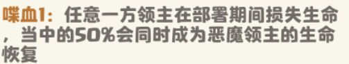 该技能是恶魔领主达到2级习得的技能,当双方领主在自身回合损失生命时,恶魔领主将恢复生命值,进一步提升了恶魔领主的战场能力。