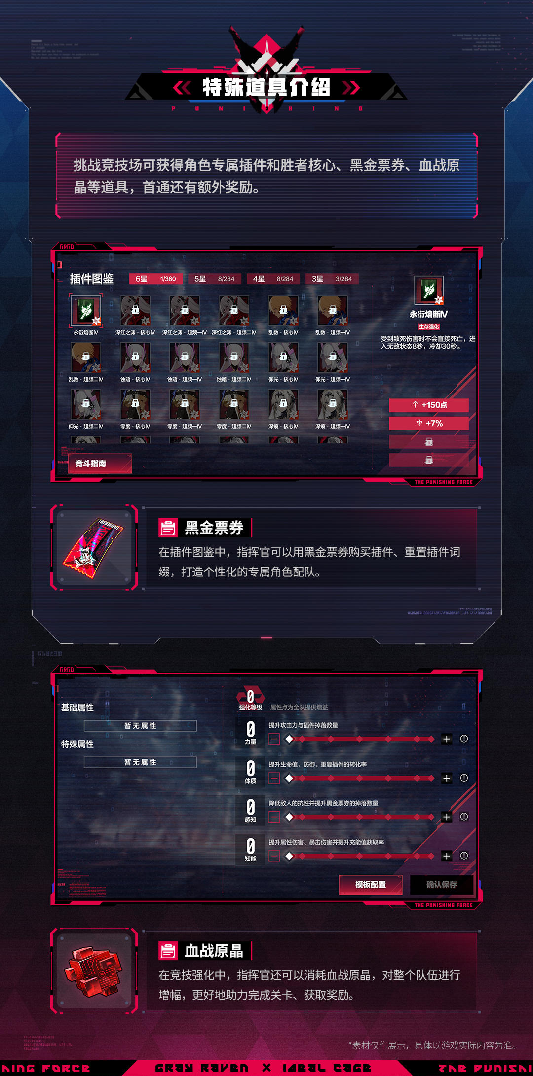 •活动包含9个章节,章节随时间与前置章节的通关状态开放,每个章节具有不同的竞斗环境,并掉落不同的角色插件。