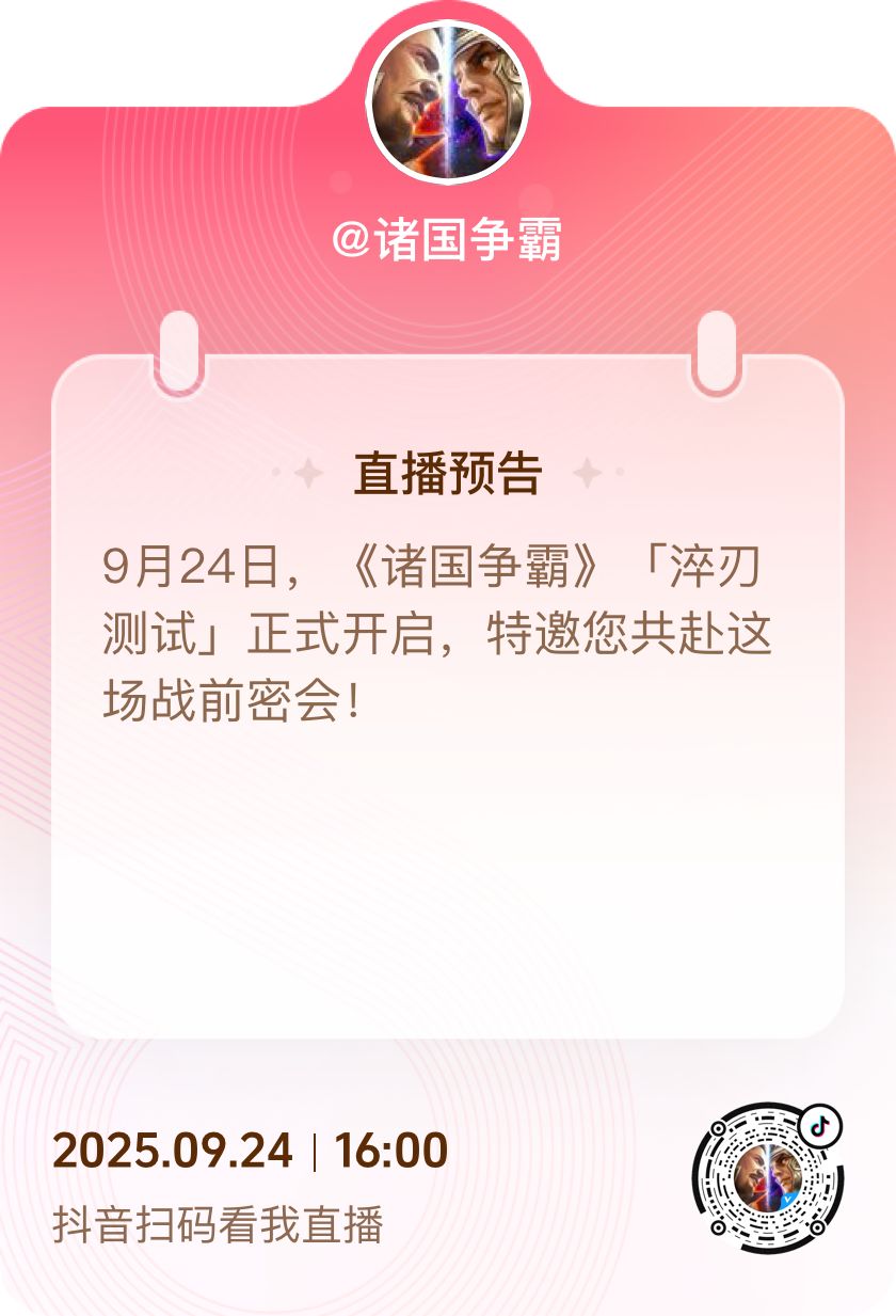 《诸国争霸》「淬刃测试」明日开测!官方直播,邀您共赴密会,不见不散!