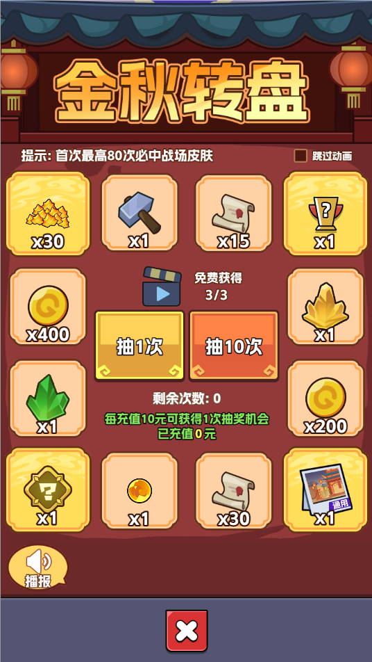 每次抽奖从8个奖励中按概率获得1个,下方4奖励可以重复获得,上方4奖励每个都有次数,做不放回抽取。最终大奖为中秋主题传说皮肤--【嫦娥·冰女】与【玉兔·喵利波特】。