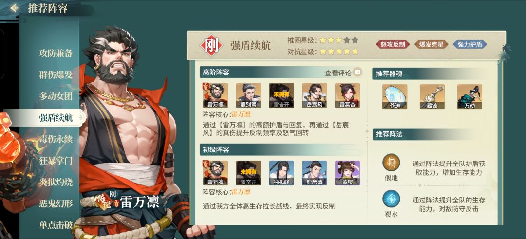 运作机制:确保雷万凛存活并触发反伤效果,三奶协同保障队伍生存能力。一旦进入中后期,雷万凛将成为最坚实的坦克。