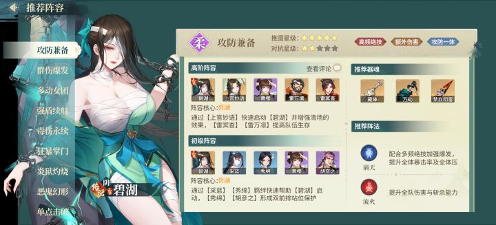 阵法推荐:辅助阵法,暴击和攻击的不需要,推荐化解和治疗的阵法。