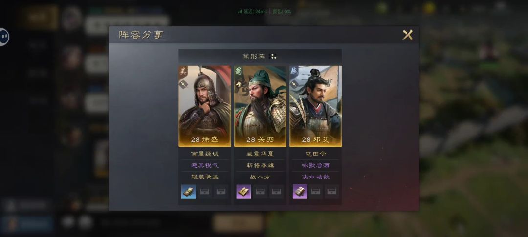 战法搭配:诸葛亮「折冲御悔」「披坚执锐」,姜维「缮甲厉兵」「胜敌益强」,刘备「步步为营」「百战不殆」。