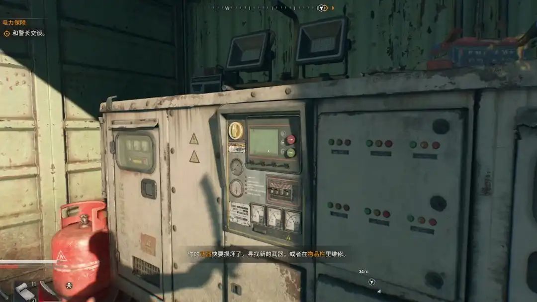 然后再来到这个半开放的货箱,发电机就在里面,我们只需要开启发电机把线缆薅过来就好了,不过注意!开启发电机的噪音会引来大量丧尸包括一只死神,还请做好战斗准备!