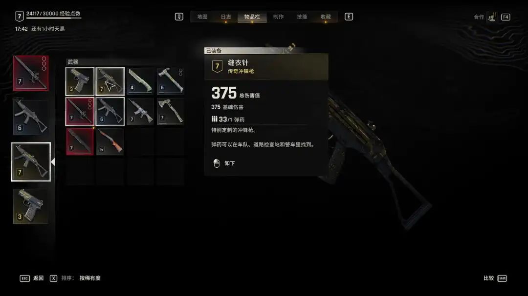 清理完丧尸后,一直进到车库的最里面,会有一个困难等级的撬锁,成功撬锁进门在桌子上就看到我们的传奇冲锋枪【缝衣针】啦