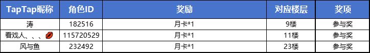 感谢冒险者们的参与,本期活动已结束,获奖名单如下:
