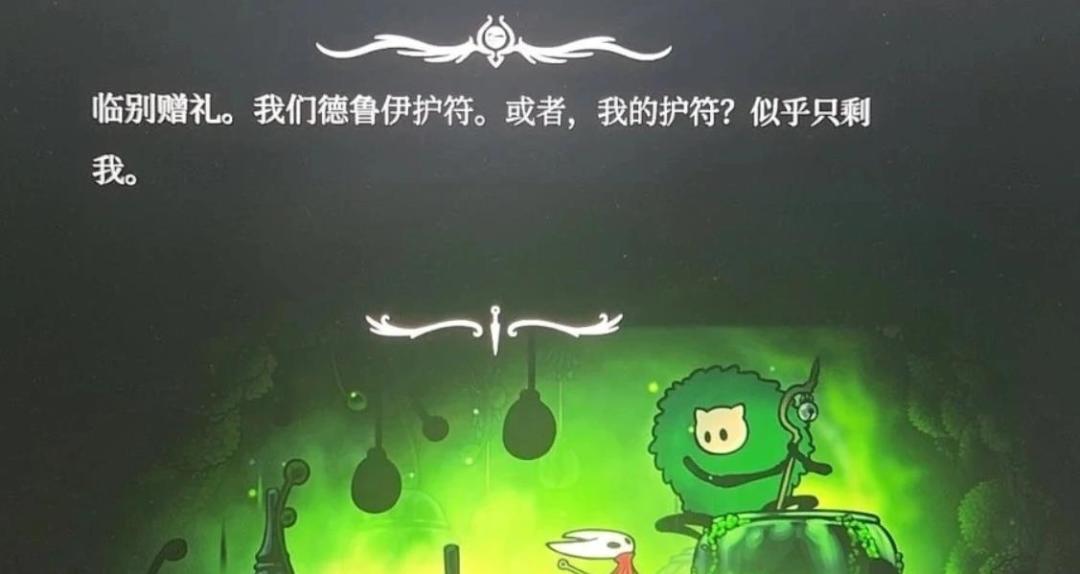 “临别赠礼。我们德鲁伊护符。或者,我的护符?似乎只剩我。”这是什么意思?这谁能看懂?对比一下其他人的翻译。“既然要分开,那我送你一个我们德鲁伊的护符,或者说,我的护符?德鲁伊似乎只剩我了。”