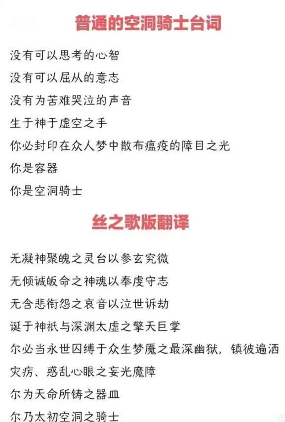 这是玩家总结的丝之歌翻译习惯,很精髓了,同一个文本日语、英语都是正常的对话,只有国区在拽字,这很难不让人恼火。