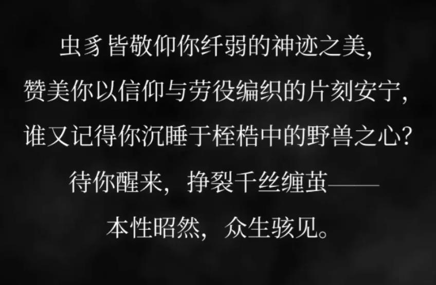 这是丝之歌的翻译,整段文本没有一个字提到虫子,“神迹之美”的神迹也没有,看着就是属于是翻译的人自嗨的东西,非常晦涩。