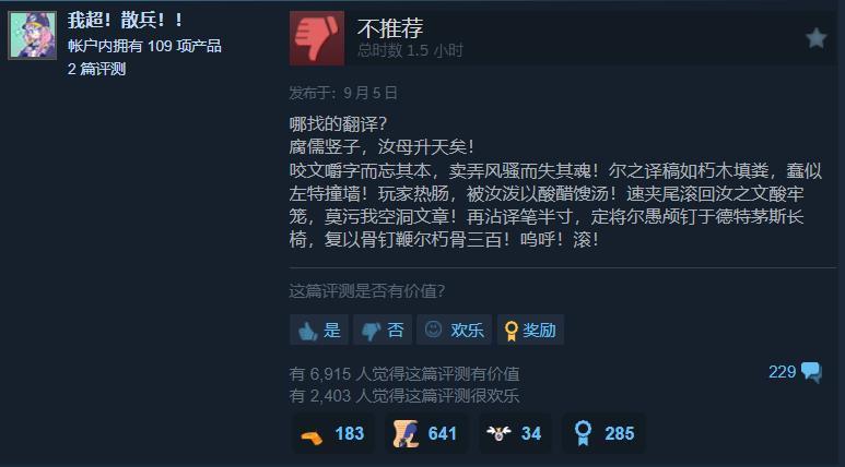 这个翻译就是那种“洋翻译”的典型症状,这个翻译者还为诛仙世界,燕云十六声工作过,贴吧小黑盒都有帐号,他的英文水平是没问题的,中文水平明显有限。