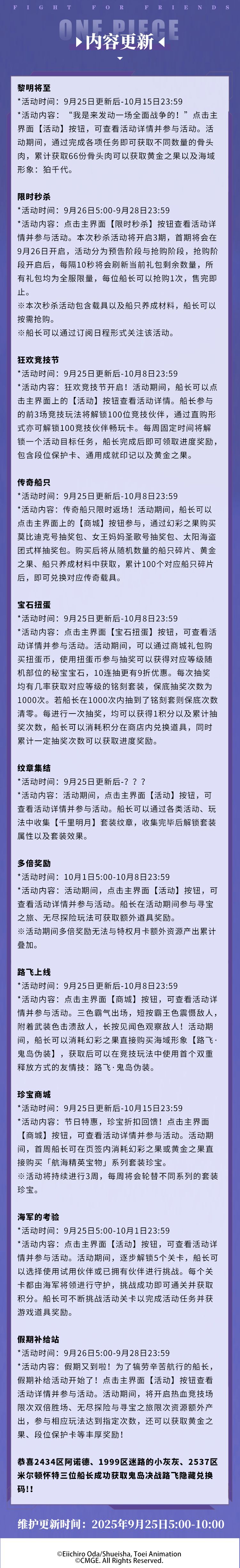 全新版更来袭!鬼岛决战·路飞坚定登场!鬼岛对决开启,鬼岛决战·甚平免费获取!同盟战体验大优化,海岛探险。联合作战更新,全新PVE体验!