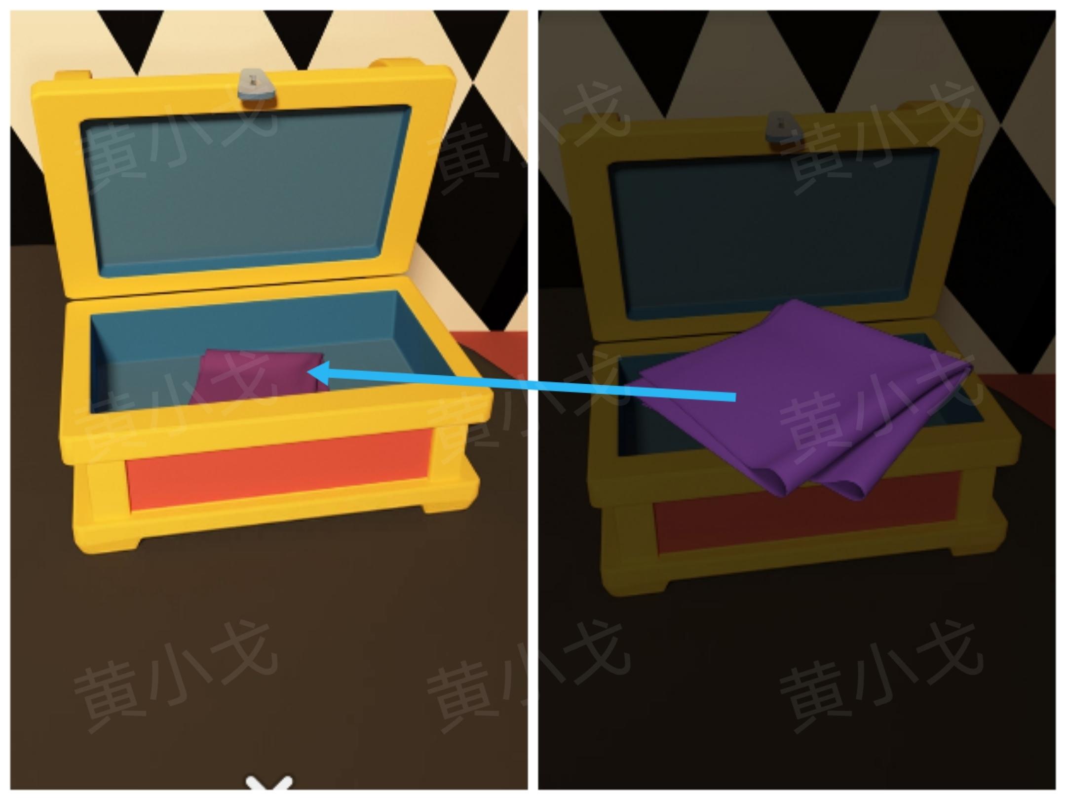 20.点击小箱子上的密码锁,根据[小猪]场景彩带的颜色及长度,调整密码锁