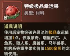 ②1500档宠物消耗彩宠突破后获得特级极品幸运果*2;