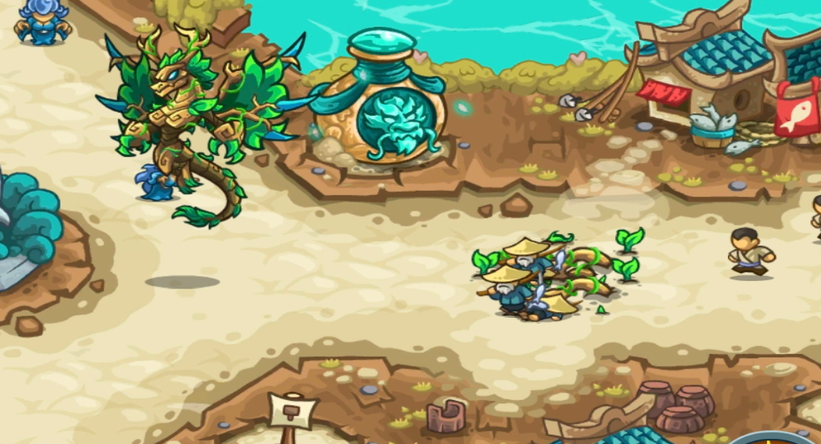 本关主要敌人则换成了众多渔民,渔民三五成群,可能从关卡起点出现,也有可能埋伏在房内伺机而出,随之而来的还有大量突袭而来的水精灵。指挥官在观察战场形势时一定要小心这些不出现在波次提示上的敌人。暴风和雷电将带来种种随机,不仅带来了自风生成的怒风怪还带来了操控雷电的穷奇,小心,他们个个难缠,且要小心天上突如其来的雷电。