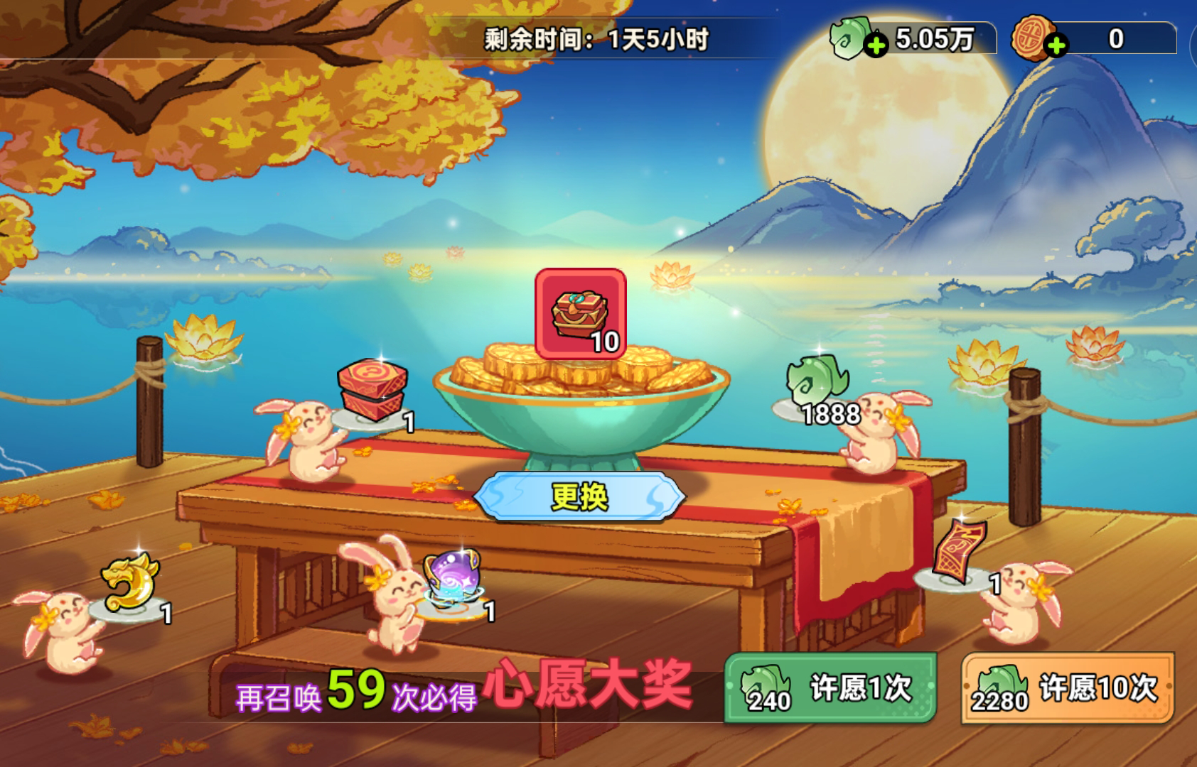 三界同赏月,中秋集福缘。仙友们参与本次中秋月宴签到累计10天即可领取月饼*35(中秋月宴许愿池道具)和玉兔*50(中秋月宴兑换奖励道具),以及丰厚仙玉奖励。大家记得每天参与签到哦!