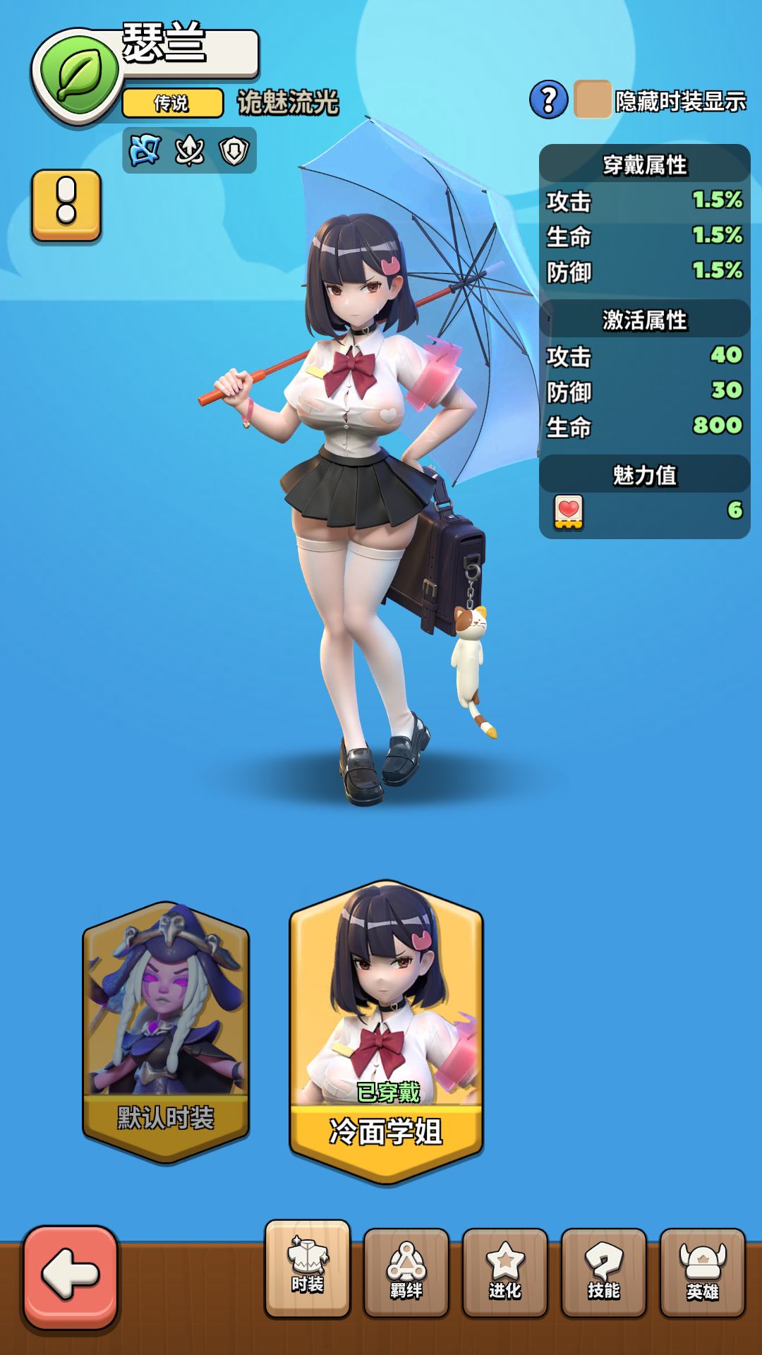 冷面学姐,带来的不止是华丽变身。激活这套时装,即刻为全体英雄带来攻击+40、防御+30、生命+800的全方位属性提升,让每一次战斗都更加势不可挡。