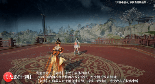 【束缚】:将敌人双手用金针束缚,持续一段时间,遭受攻击后脱离束缚。