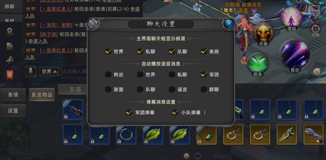 自动播放:还在打BOSS或者激情PK的时候,被聊天频道里突然冒出来的语音打断节奏?其实,这个自动播放是可以关掉的。点击聊天框左侧的【表情】图标 → 右上角【设置】→ 关闭【自动播放语音】