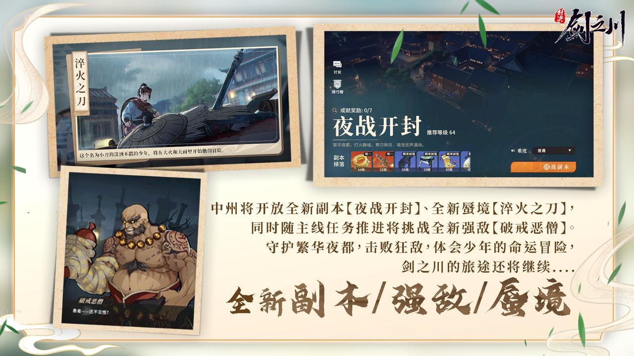 《对决!剑之川》今日重点更新 —— 世界区域四中州开放!这是一次超大的世界地图更新啦~快来速览本次区域更新有哪些新内容吧!
