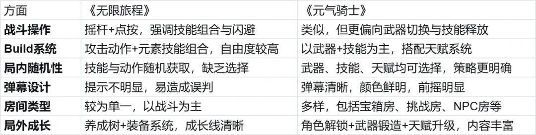 - 游戏局内每次对于技能和攻击动作没有可以选择的余地,虽然build自由性大大增加,但局内能够构成的build已经被没有选择的技能和动作定死,玩家在游玩过程中只能获得路径的决策权,但是获得偏向于自己想要的技能概率较低,不确定性过高。