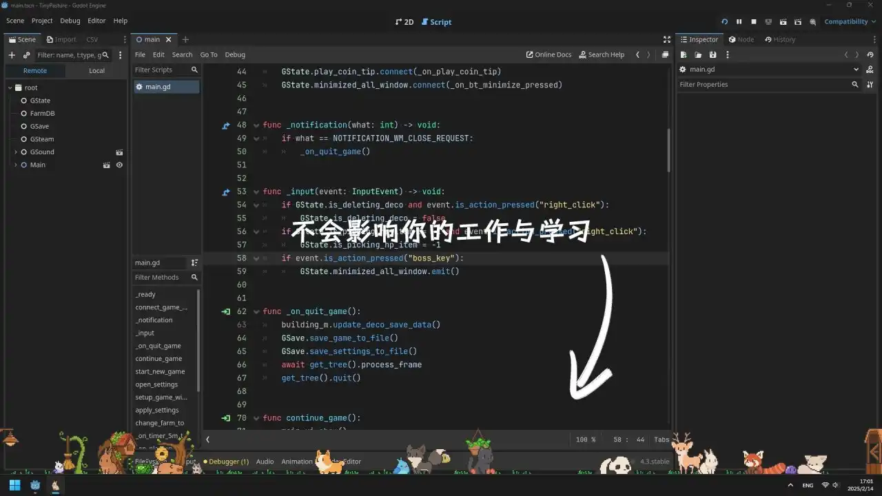 如何躲过老板的监视?众所周知,老板总是神出鬼没的,一旦让老板知道这是一个可以用来摸鱼的小桌宠那么一定会将其打入黑名单,不必担心,玩家们可以随意的调节牧场的长度与位置。玩家们可以将其放置在一个非常隐秘的地方。不过,摸鱼归摸鱼,优先完成老板交代的任务才是摸鱼的前提。
