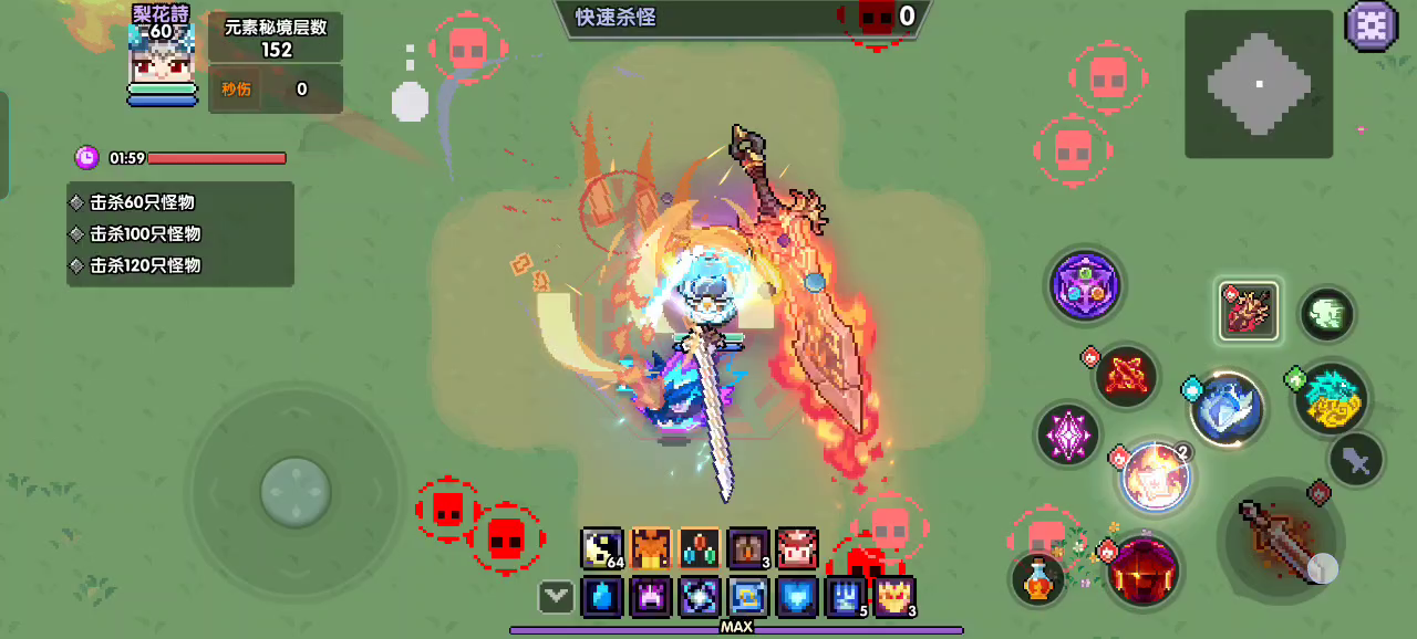 靠右上/下,拉最边上的怪,尽可能往中间带,随后放橙技能