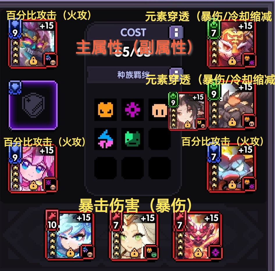 稀有属性选择(技能共鸣18级前):属性压制>伤害增幅≈技能等级>克制增幅>护盾伤害/火攻>攻击强度