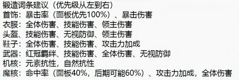 武器选择专属红武冰狱玄钉,盔甲选择羽衣,头盔和鞋子选择捣蛋兔,戒指选择碧蓝玉戒指,项链选择黑煞之心雷,齿轮选择时间齿轮,魔核选择黄金蛇眼或者冥犬利爪。