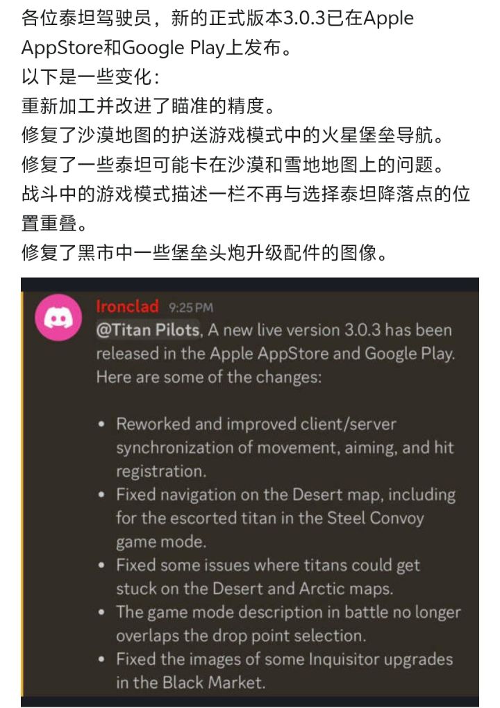 各位泰坦驾驶员,新的正式版本3.0.3已在Apple AppStore和Google Play上发布。