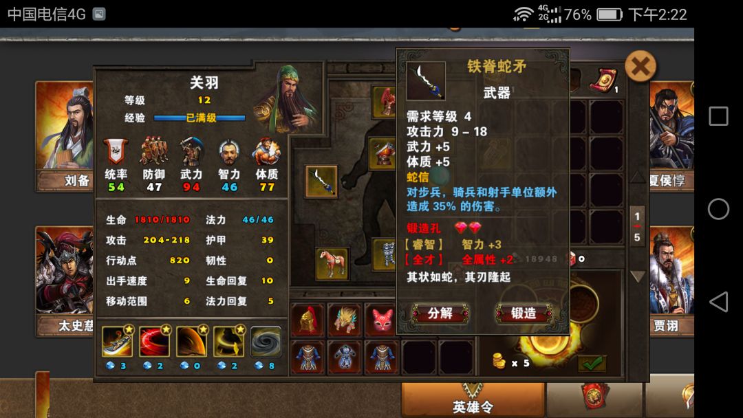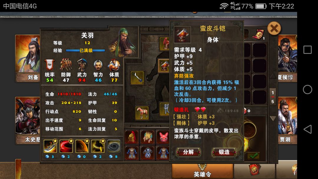 终于到了群雄这关卡,这个是该游戏第一个刷卡的地方,并且可以一个新人装备箱子,有一定几率掉落方天画戟和七星刀。