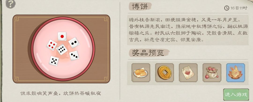 ④活动奖励:根据骰子的情况,你本人和邀请的两个村民中的奖归你所有;每次结束后可看到当日获得的奖励。