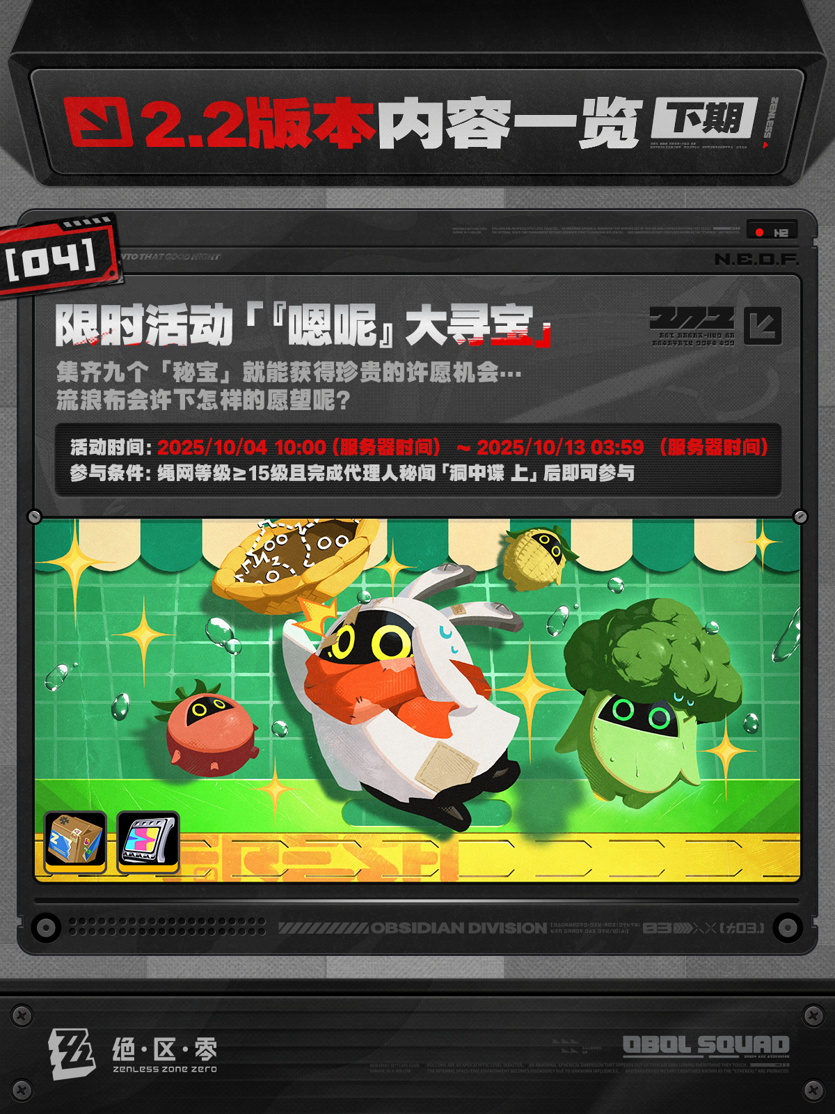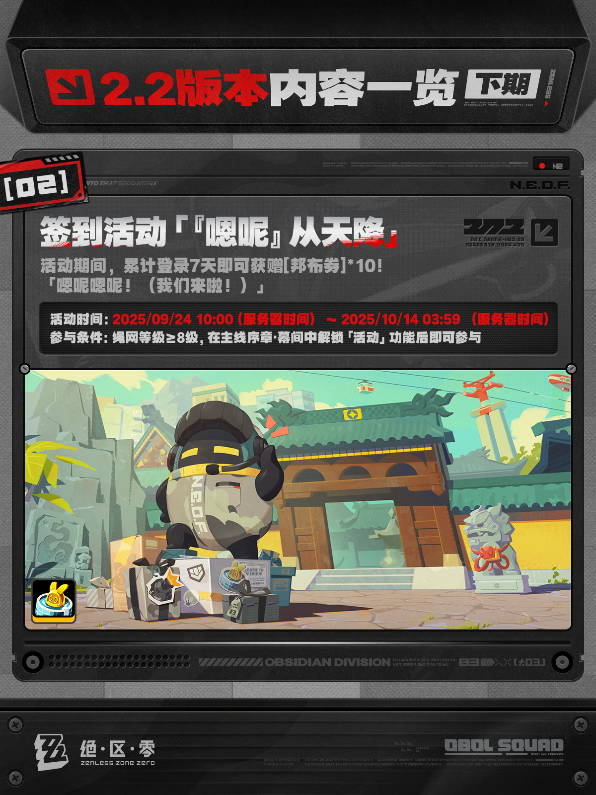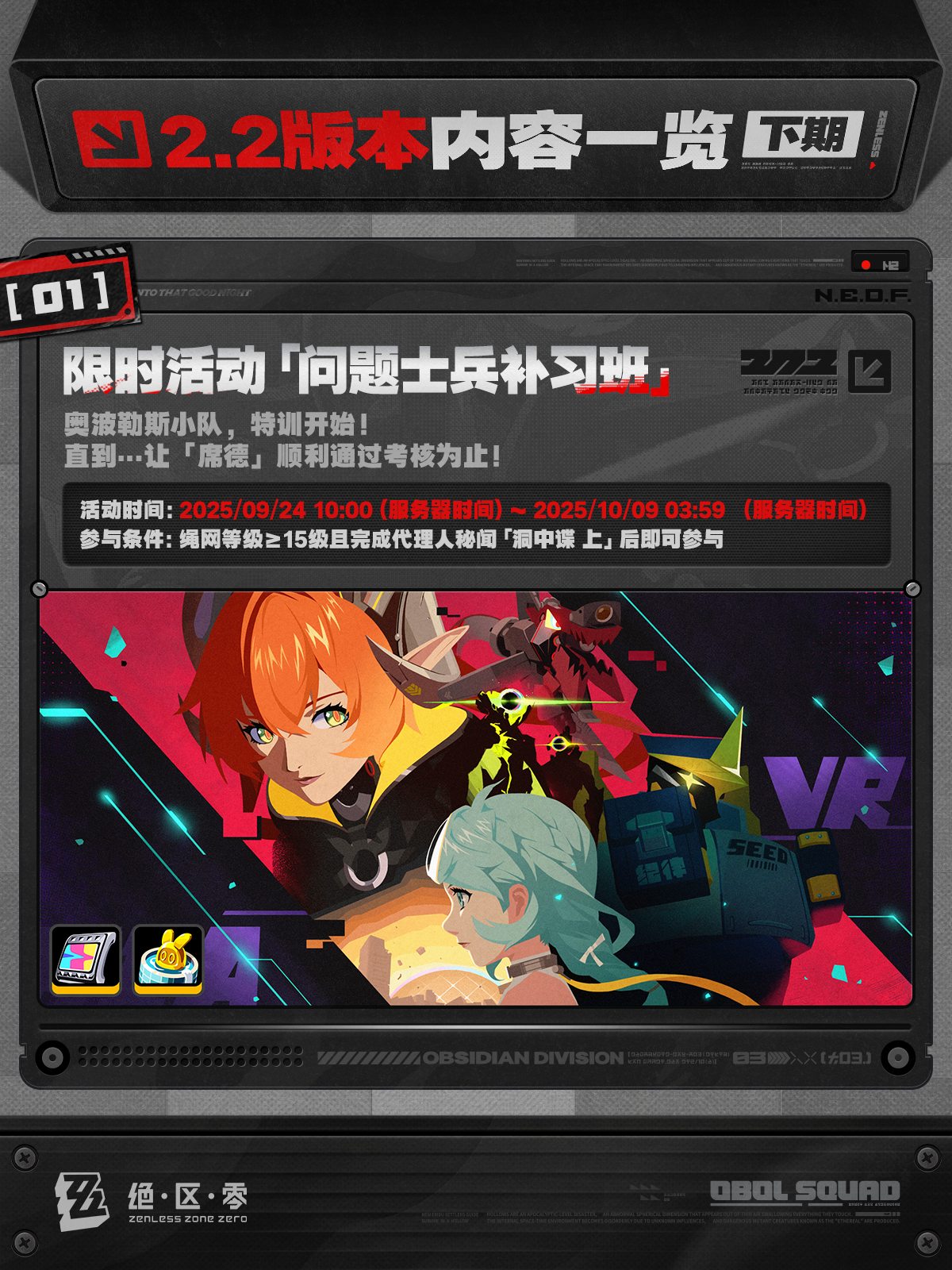 S级代理人[奥菲丝&「鬼火」(强攻·火)]、[伊芙琳(强攻·火)]与S级音擎[嚣枪喧焰(强攻)]、[心弦夜响(强攻)]加入限时频段;