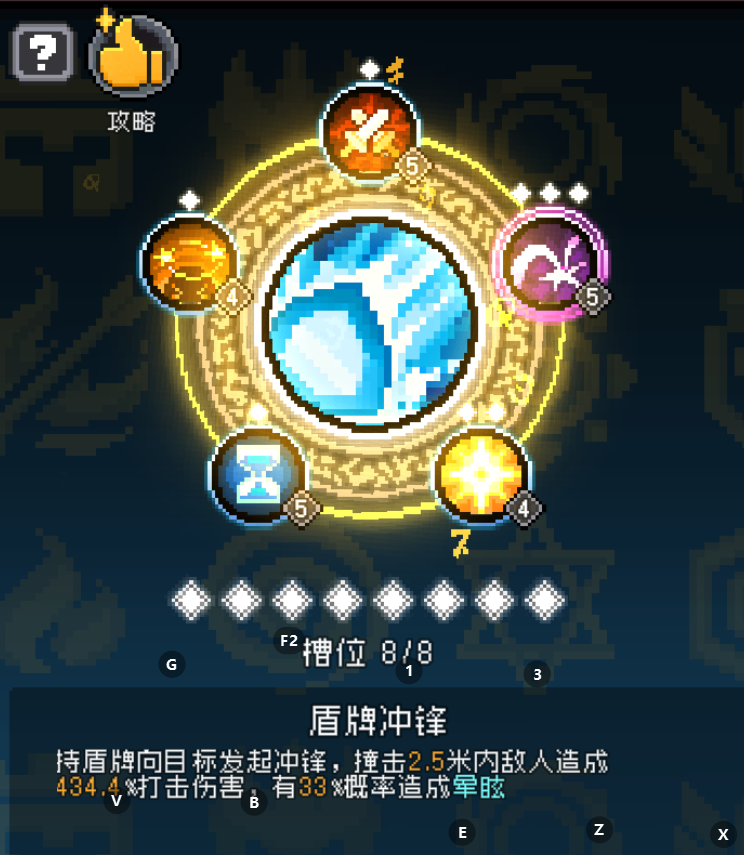 这里展示的是没有加芯片的情况,根据图中加点对着抄就好,因为专精槽位无法通过芯片提升等级,所以技能点没法节省,盾冲的八级还是得点出来