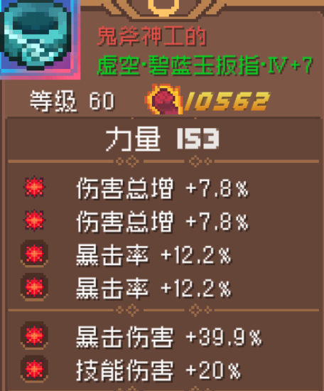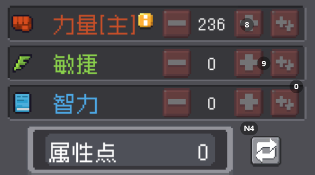 属性加点和巅峰加点不用赘述,主要属性有提供额外攻击,直接属性全部加力量,巅峰在确保其他两个属性加成全部吃到的时候全部加点力量