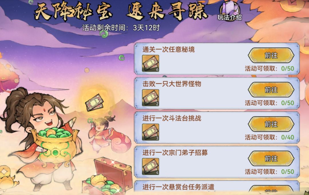 祖师只要消耗貔貅宝钱等道具将瑞兽喂饱即可获得寻仙令、灵玉等丰厚奖励,更可激活赐福效果,福泽宗门!