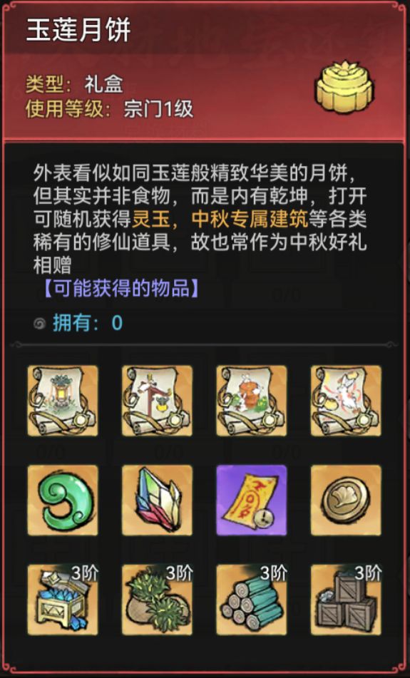 9月29日~10月6日,通宝仙市会开启,祖师可以消耗中秋月饼券和不同的材料限量兑换星辉玉、许愿币、玉莲月饼等奇珍物品。