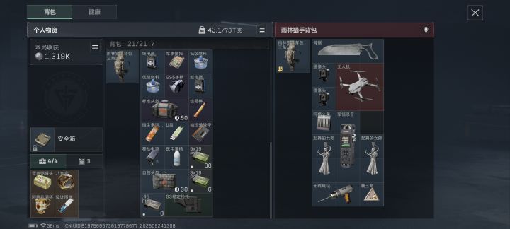 野排跑刀开局在雷达站一号位,我直奔主楼的大保。吃完以后放无人机看无人机平台(房卡大涨价涨价全凭银翼),看到无人机果断开卡,队友还在二楼转着吃(就无名跟着进来了),标记以后塞保险到底下的时候无名打字和我说能不能给他无人机,他还没出过。我想反正我无人机在上赛季就备了好几张,普长进来的一般都是鼠鼠,就寻思着让他拿东西换,无名刚出去就给外面一个四套三蛋维克托的银翼偷了,和对面银翼二人转了一小会侥幸拿下,拉起来以后得吃舔包,吃完了以后180W,然后想了想还是把无人机给了无名,保险里塞了一点自己吃的小金