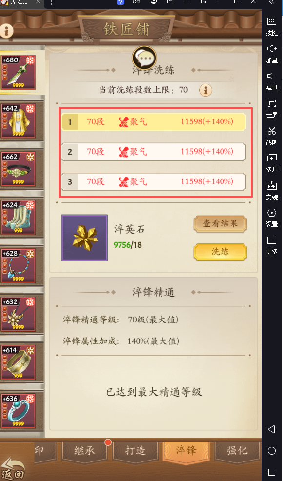 图片标注的这3都要购买,特别淬英石保证前期聚气优势。