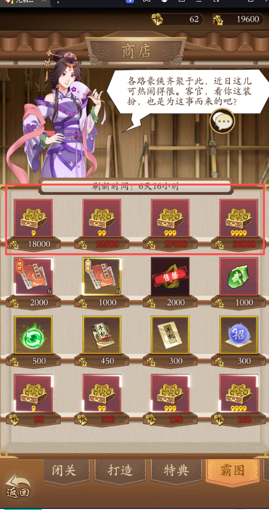 武学点+突破书。残卷我不是很建议买。毕竟随机除非是打折的,次数的话看元宝情况,刷200停都可以。